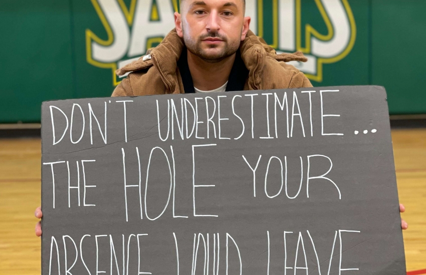 Zachery Dereniowski has had many interactions with St. Clair College staff and students this semester, hoping to inspire whoever he meets on South Campus through this simple but powerful formula.