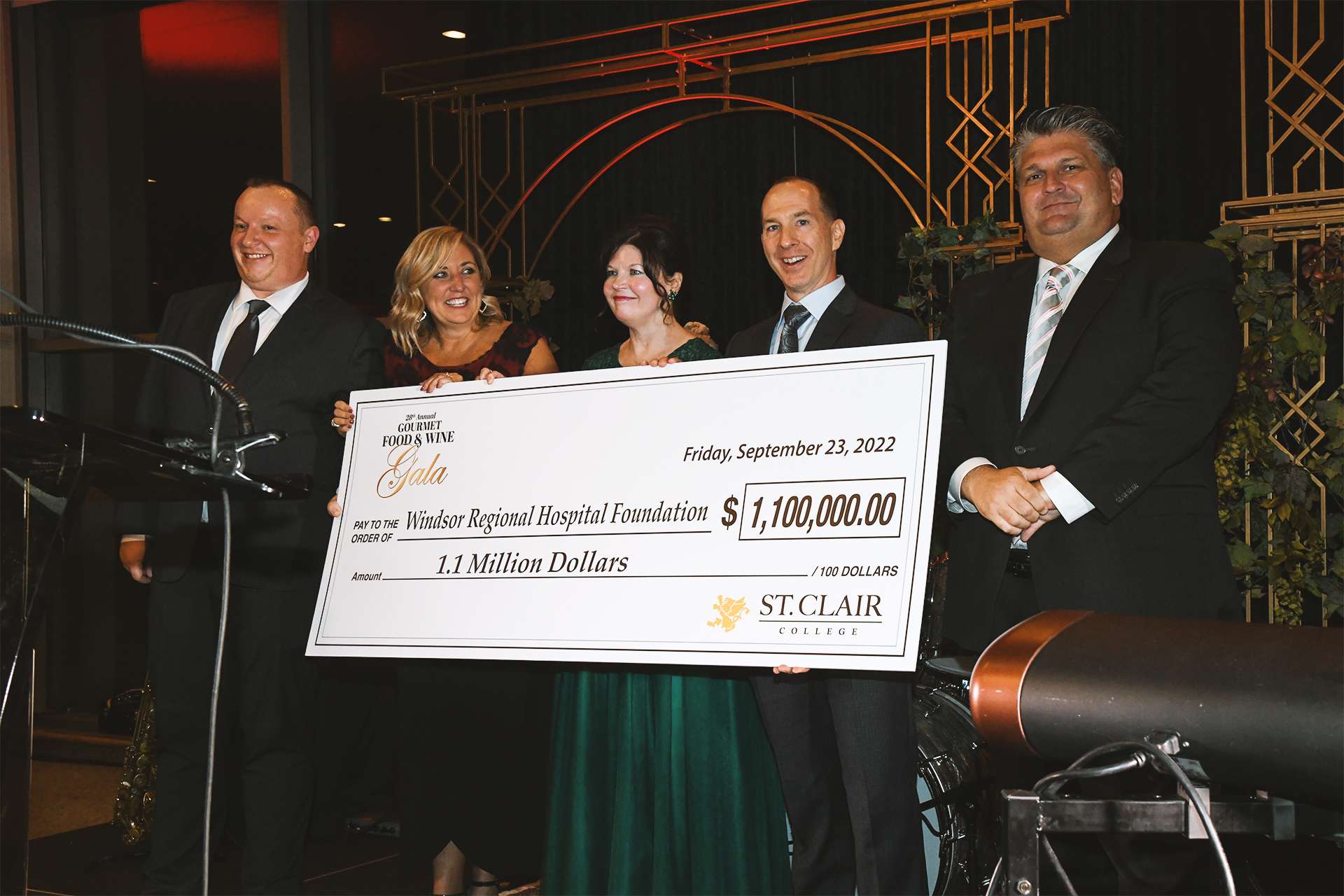 The evening raised $1.1 million for the Windsor Regional Hospital Foundation to purchase new state-of-the-art equipment for the new acute hospital. The funds were generated by the gala's sponsorships, ticket sales, donations and pledges to the foundation. The night's largest contribution of $500,000 was provided by the St Clair College's Alumni Association.