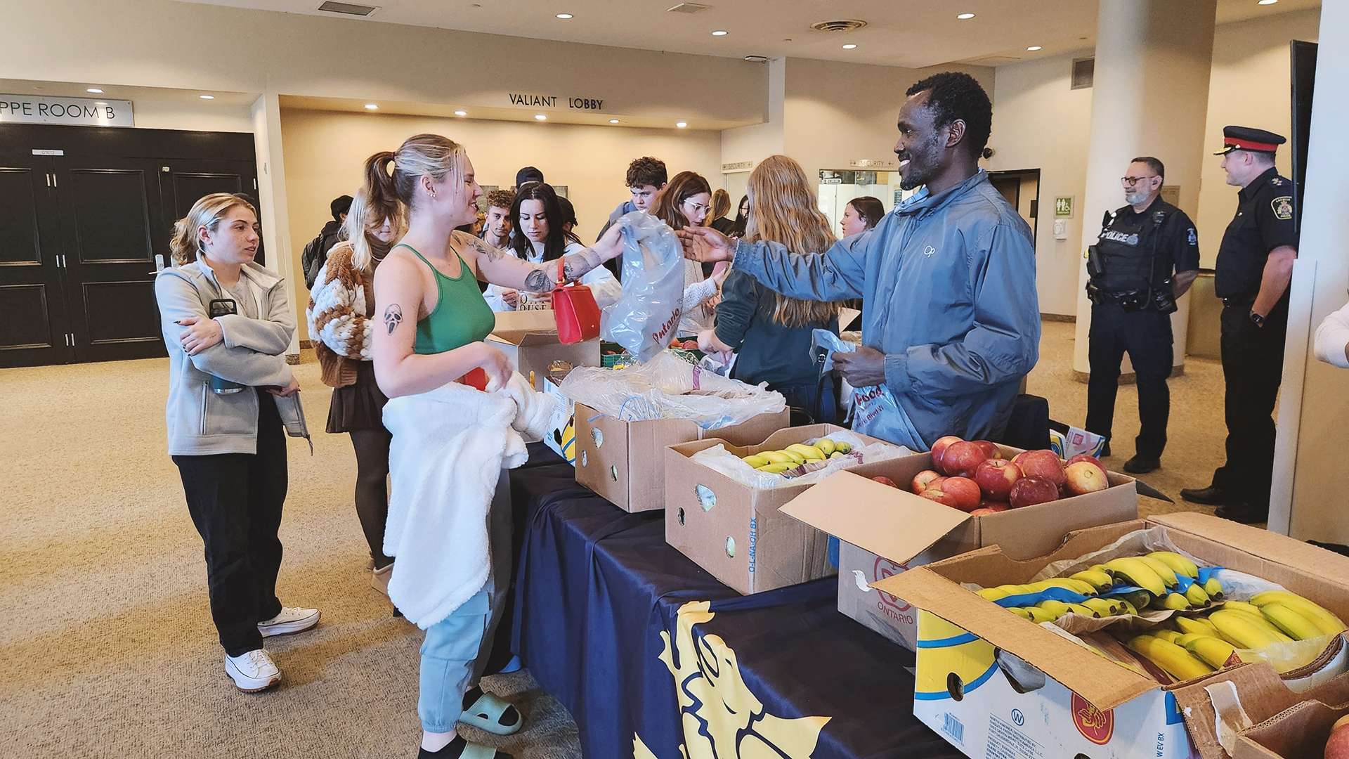 Hosted in partnership with the LaSalle Police Service, the CJS Club set up a booth in the front lobby of the St. Clair College Centre for the Arts on Oct. 18, providing fresh fruit to students at the downtown campuses.