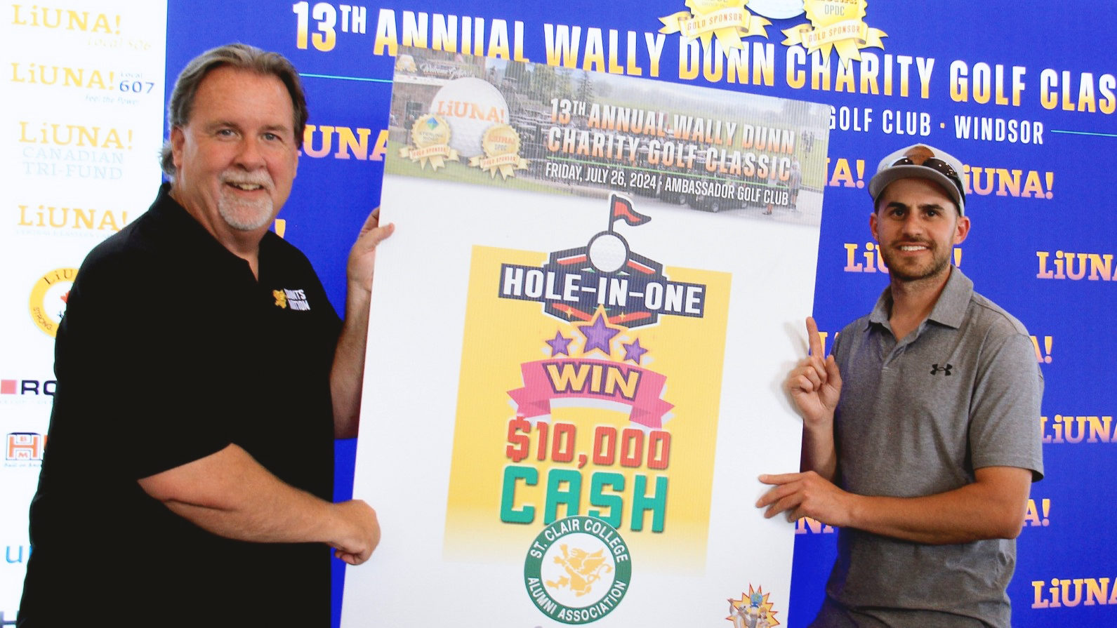 "It's one of the most amazing phone calls I've ever received," said John Fairley, Senior Vice President of Communications, Advancement and External Affairs at St. Clair College, who took a call from Cathy Zaharchuk at LiUNA 625, who advised there was a $10,000 hole-in-one winner at their golf tournament. "I was pleased to join in the celebration with LiUNA 625 President Rob Petroni, Jeff Burrows and all the golfers and to congratulate Kyle, in person, on his amazing shot."