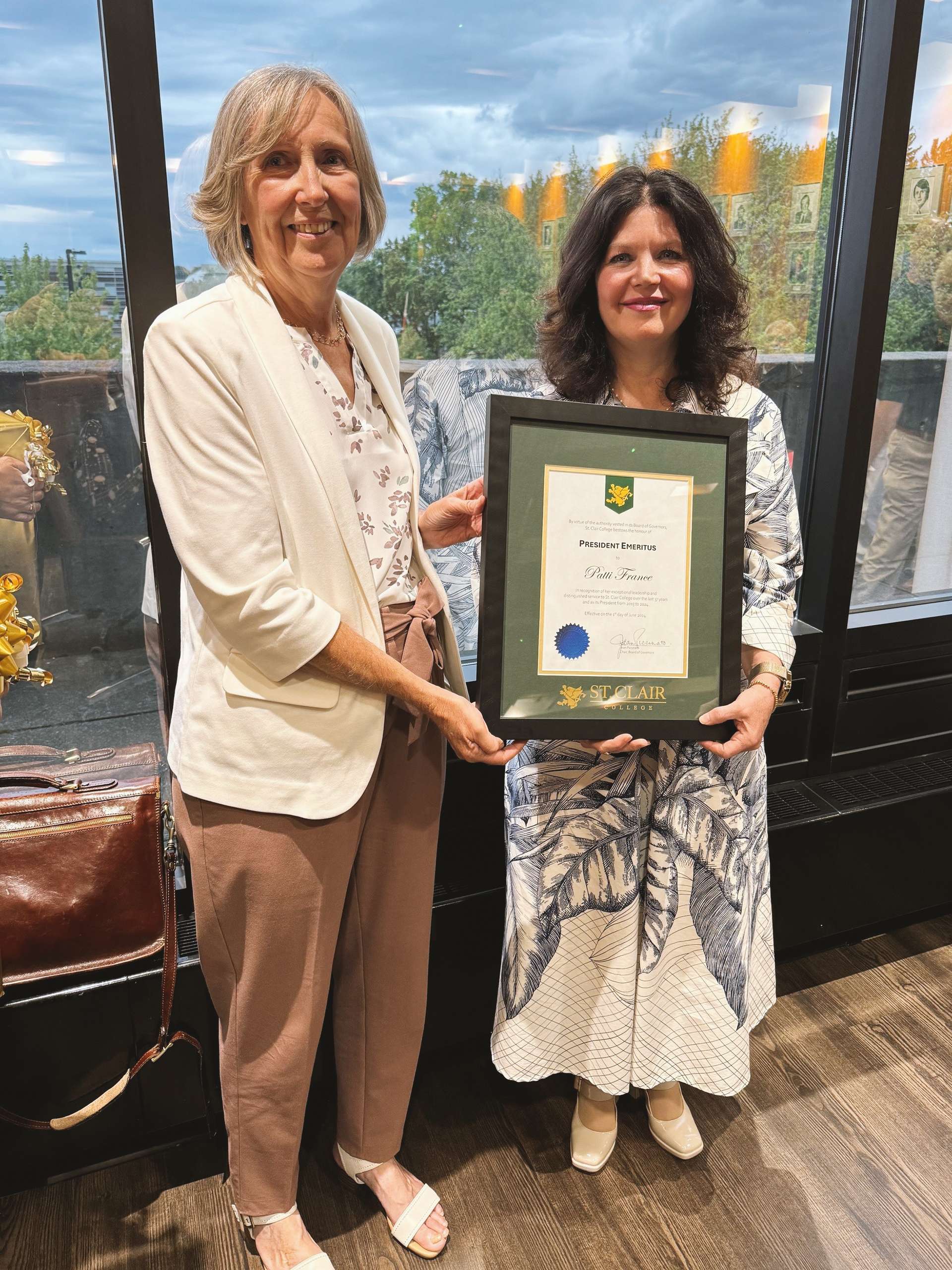 After 35 years in various roles at St. Clair College, retiring President Patti France is now retired President Emeritus Patti France.