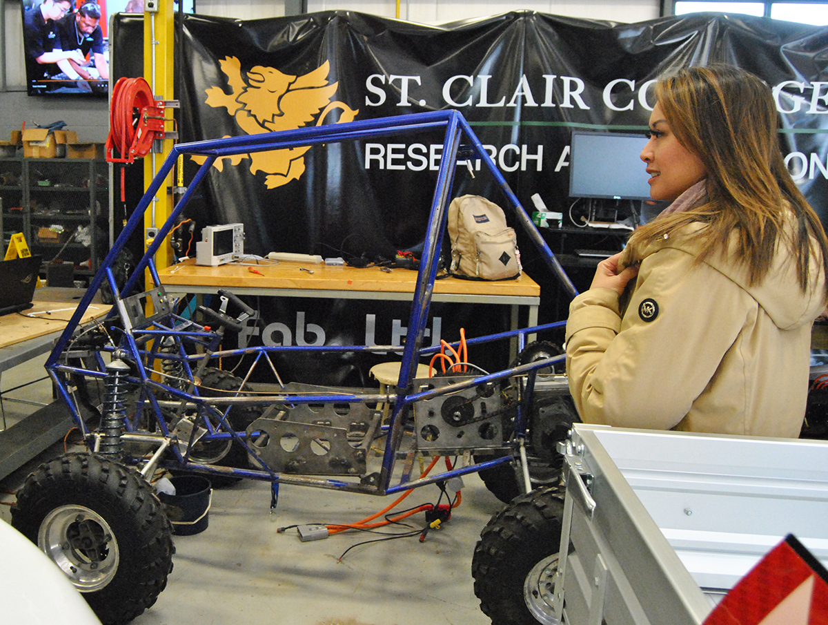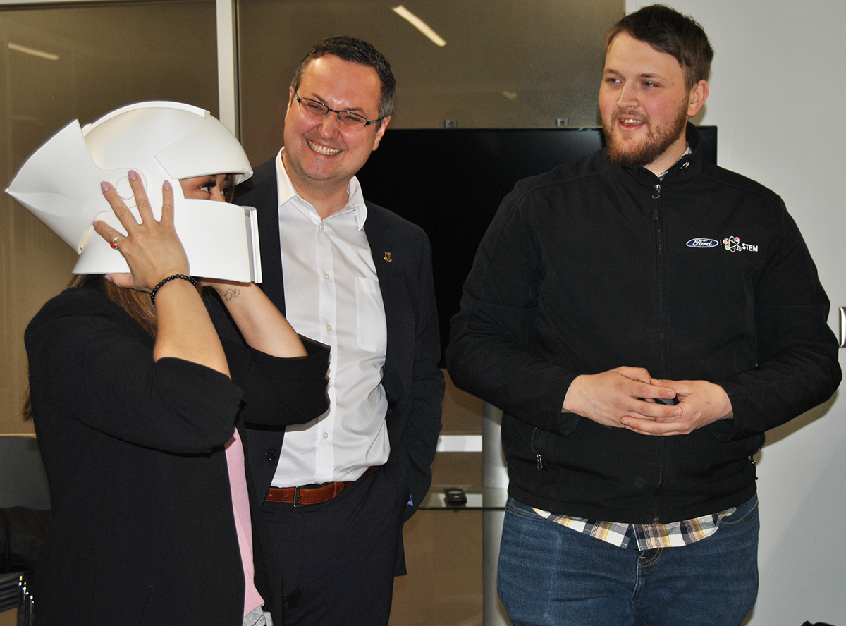Minister Valdez and MP Kusmierczyk also met with Quinton Gignac, first-place winner of the 2023 Ford Innovation Showcase. Quinton used his prize winnings in that competition to purchase a 3D printer for a new business venture which he now operates whilst continuing his studies in the Mechanical Engineering Automotive Product Design Program.