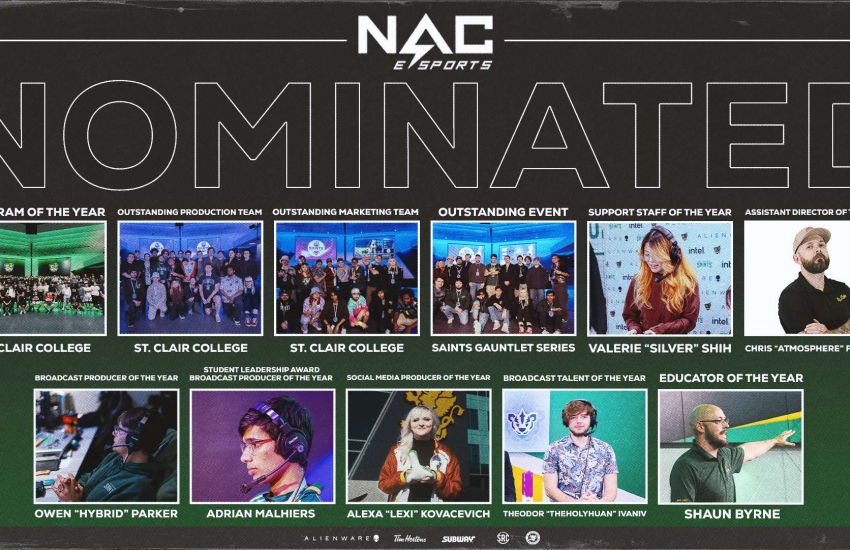 St. Clair College's Esports program has been nominated for 12 National Association of Collegiate Esports (NACE) Awards, the most nominations of any college or university in North America.