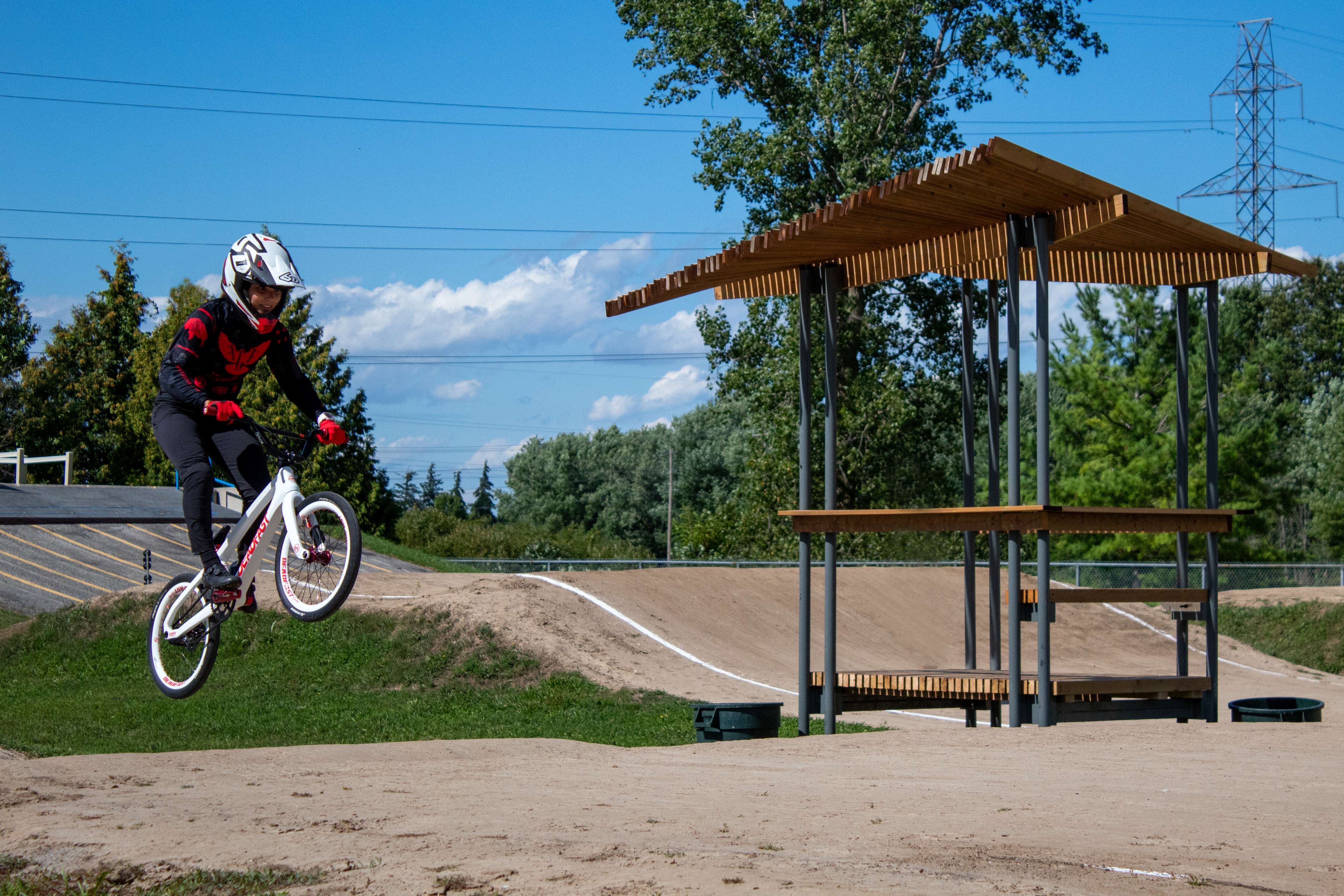 The new tower was a highlight of this year's Ontario Provincial BMX Cup Qualifier and served as the backdrop for professional BMX rider Elida Beeman's elite training clinic.