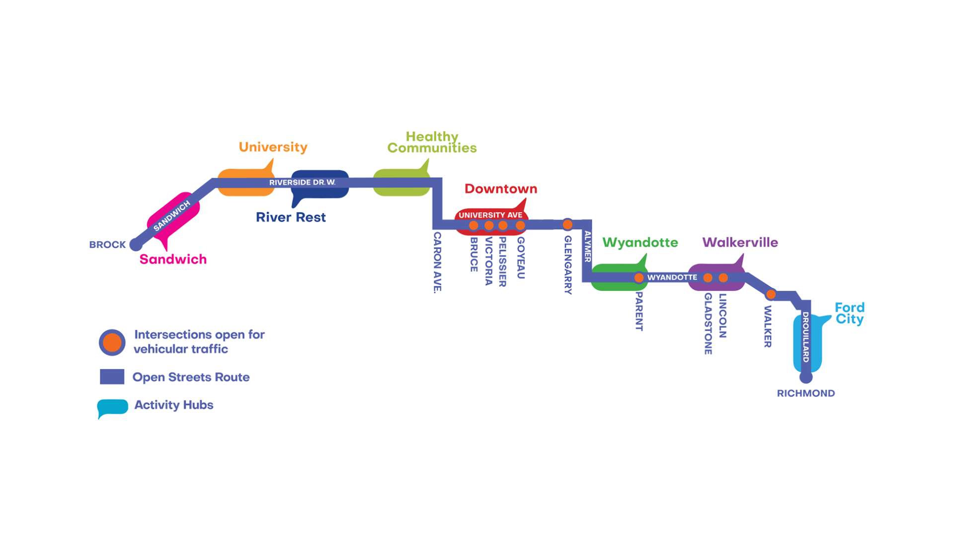 Residents and visitors are invited to take to the streets by walking and rolling along the designated route to explore and enjoy the vibrant neighbourhoods that make Windsor unique. Music and activities will line the route as the streets are reimagined to allow the community to gather, engage, and explore.