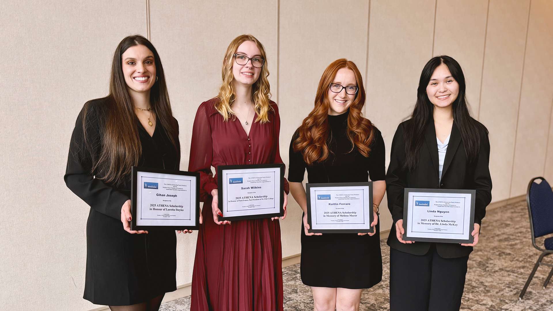 The four women honoured this year include Kaitlin Ferraro, Gihan Joseph, Linda Nguyen and Wilkins, who are recognized for their achievements and dedication to empowering others. Athena Scholarships are valued at $5,000.