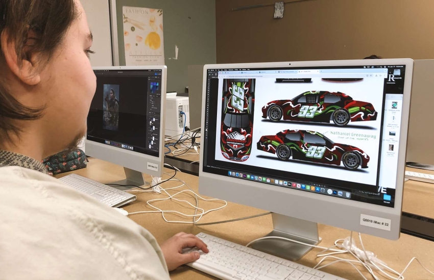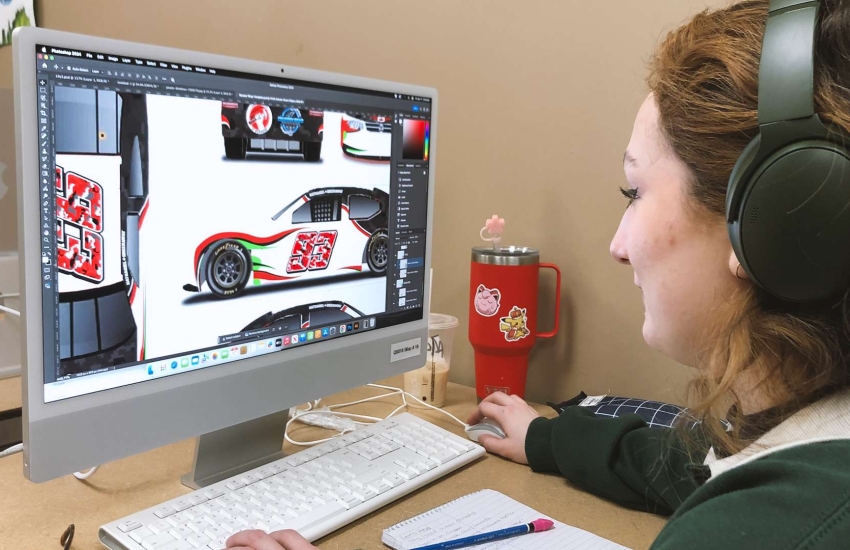 "The race car wrap project came to be on a random day driving into work," recalled Driedger, who now works as a graphic designer at Impact Graphics and Signs in Chatham. "I was reflecting on my time in school and all my projects, thinking of any design ideas towards vehicles and remembering that there wasn't a project that specified in vehicle graphics."