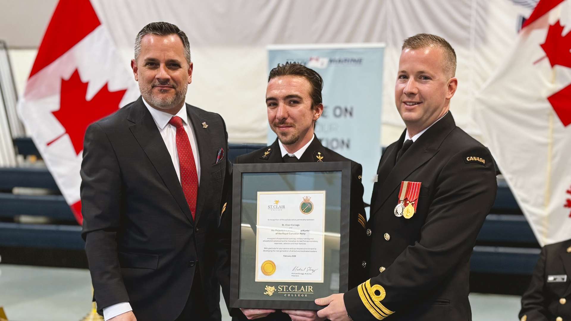 The agreement takes immediate effect and further establishes the relationship between the HMCS Hunter – Canada's most decorated Naval reserve – and St. Clair College.