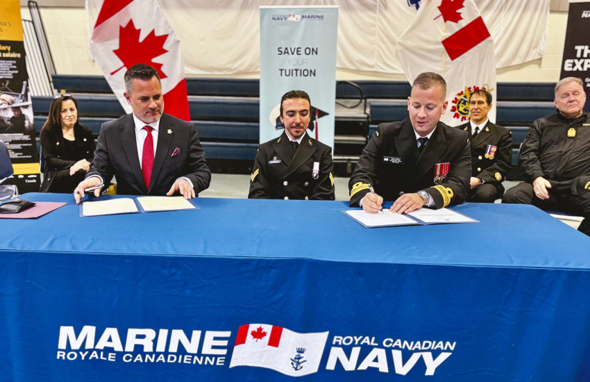 St. Clair College signed an agreement with the Canadian Military, Veteran and Family Connected Campus Consortium (CMVF3C) during a signing ceremony at HMCS Hunter, reaffirming its commitment to supporting military-connected students and their families.