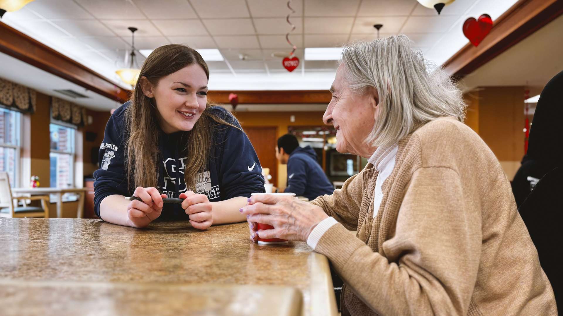 Coffee and Companionship is a student-led initiative, where a group of students will visit neighbours at the on-campus long-term care home to spend an hour with residents, and share stories, experiences and wisdom.